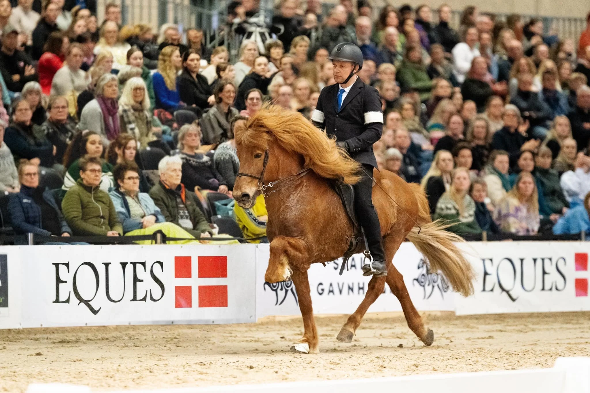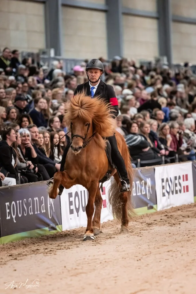 Röskur med Rasmus på ryggen da de vandt T.1 ved Icehorse Festival 2024 med 8.06